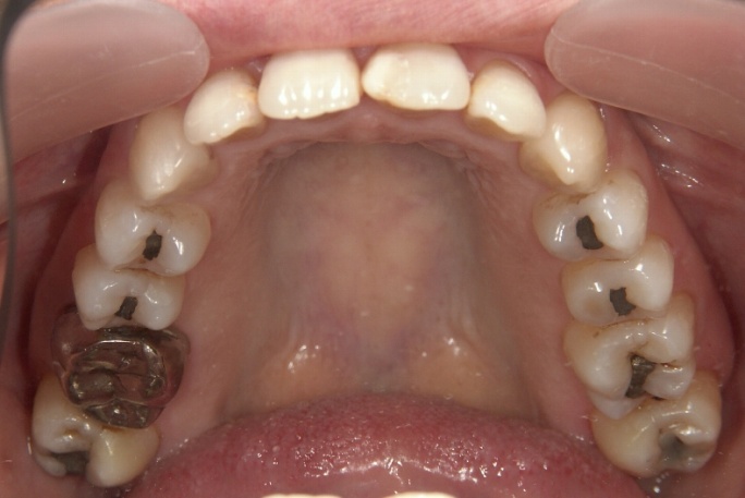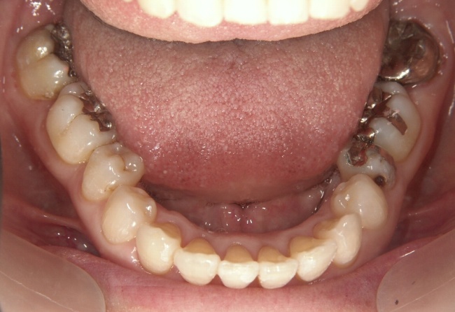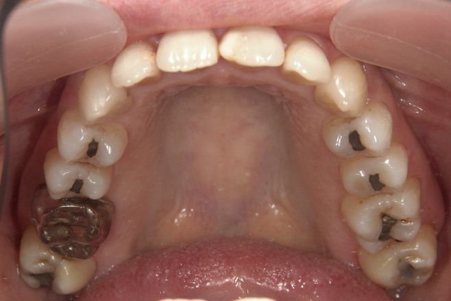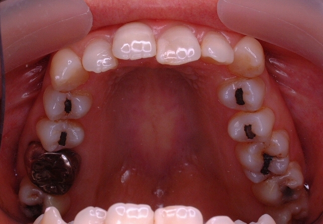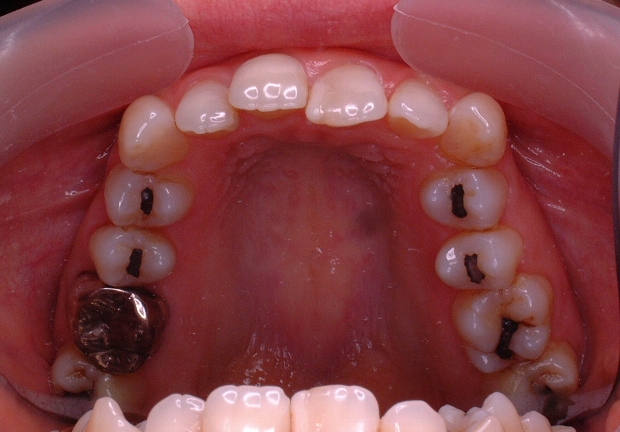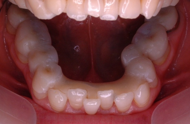 | 初診より3ヶ月スプリント除去後の口腔内 | ||