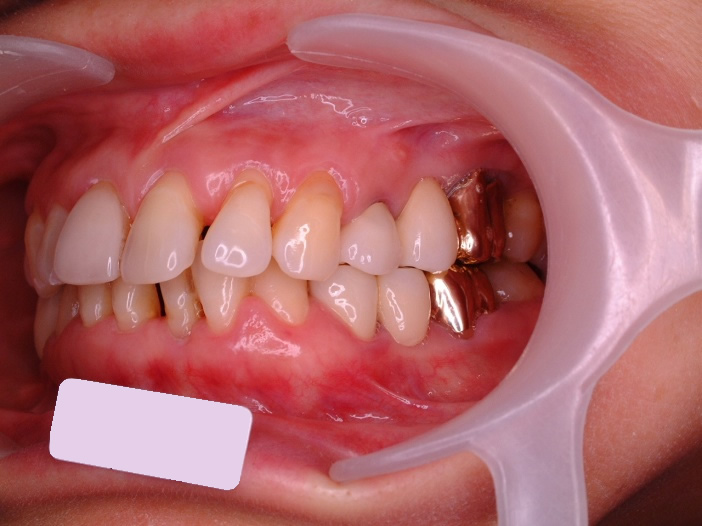 | 顎の偏位で下顎から突き上げられて1と2の間に隙間が出来ている | ||