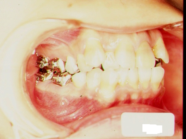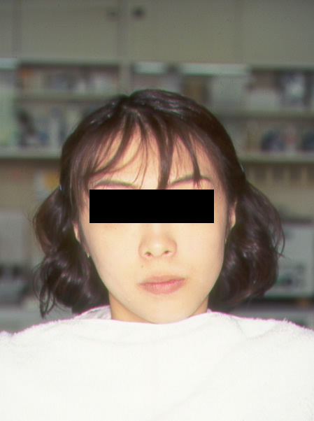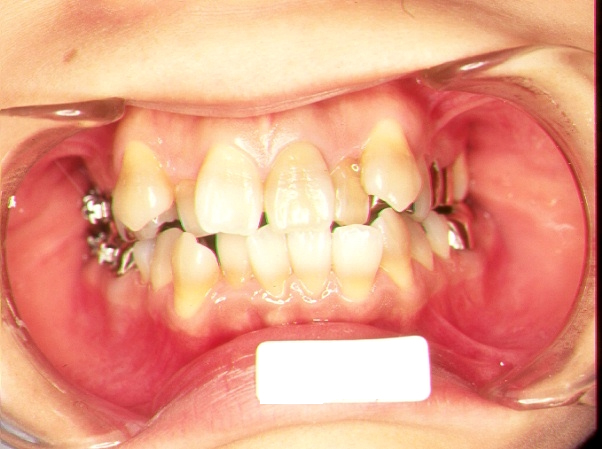 | 95/10/25 両側の犬歯が前に出ていて下顎の位置まで左にずれています。 | ||